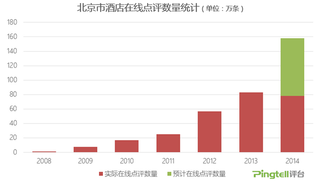 以北京市的酒店为例,在线点评年平均增幅达到140.7%,以这一速度发展下去,酒店将需要花费更多的人力成本和时间成本去管理在线声誉。