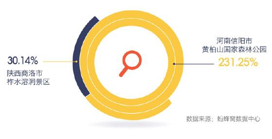 同类新增景区中,搜索指数最高相差达201.11%。河南信阳市黄柏山国家森林公园在新增景区中搜索指数排名第一,9月环比搜索增长231.25%,而陕西商洛市柞水溶洞景区,搜索指数只增加了30.14%。