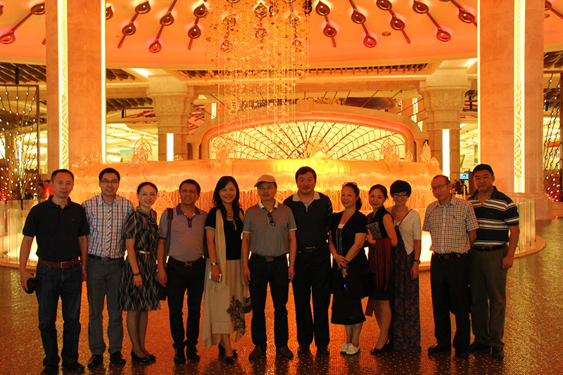 9月8日代表团一行参观了澳门新建特色酒店文华东方酒店、美高梅酒店、威尼斯人酒店、银河酒店、日本大仓酒店及悦榕庄酒店。并参加银河酒店招待晚宴,观赏位于新濠酒店内的全球最大型水上汇演《水舞间》。通过参观澳门的酒店,大家深深地感受到了近年来澳门酒店业的飞速发展已经成为澳门经济发展中最为凸显的行业。多间集博彩、品牌酒店、高档零售商场、会展、表演等多种设施的综合酒店经营模式改变澳门城市面貌的同时,更为澳门多元旅游模式提供新的发展方向。综合酒店业的发展,不仅加快澳门旅游基础设施和公共设施的建设速度与规模,也促进会展、珠宝、手信、航运及物流等相关行业的繁荣。