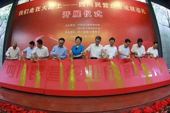 7月7日,由中共四川省委统战部、四川省工商联共同主办,以“坚定信心 携手圆梦”为主题的“我们走在大路上——四川民营企业成就巡礼”大型展览在成都建川博物馆隆重开展。省委常委、统战部部长田向利出席开展仪式并讲话。省人大常委会副主任叶壮,省人民政府副省长李云泽,全国工商联副主席、省政协副主席、省工商联主席陈放,成都市常委、统战部部长吴凯及省委统战部、省工商联有关领导同志出席开展仪式。