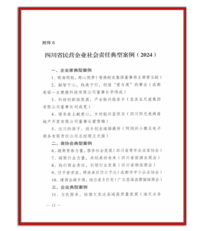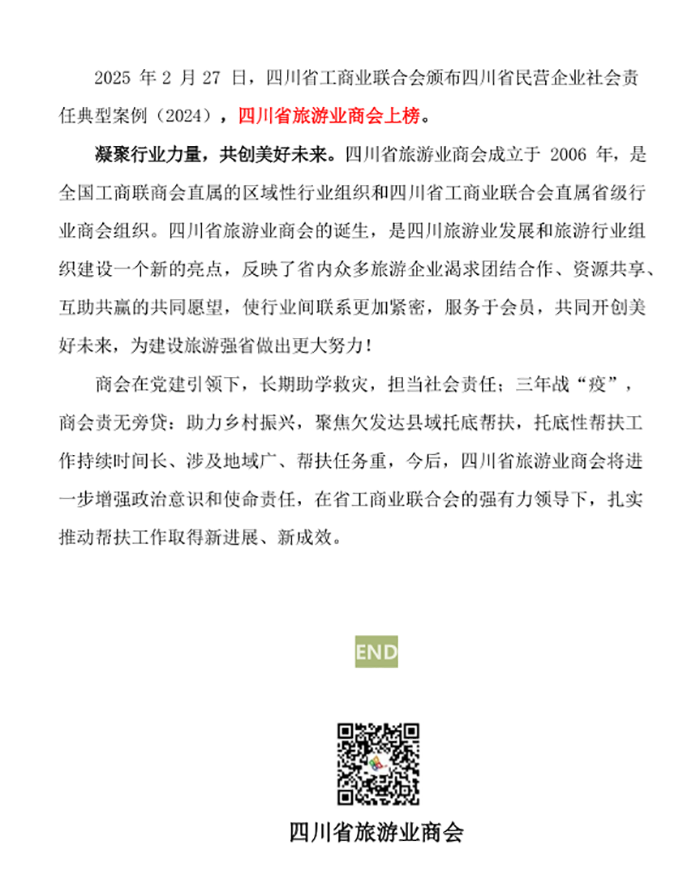 商会荣获2024四川省民营企业社会责任典型商(协)会案例